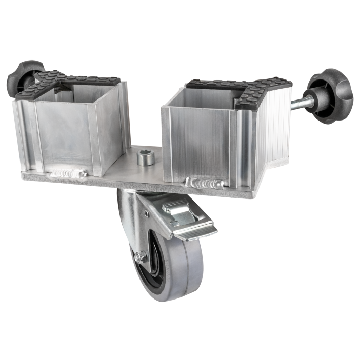 The Showgear Mammoth Dex Double Leg Insert Swivel Wheel enhances the mobility of your Mammoth Dex stage. It integrates seamlessly and allows you to insert your Mammoth Dex legs into the holder, instantly transforming your stage into a rolling riser for quick and effortless repositioning. These wheels are perfect for events, performances, or temporary installations, and ensure smooth movement and secure stability when locked in place. They are available with or without brake and for single as well as dual legs.