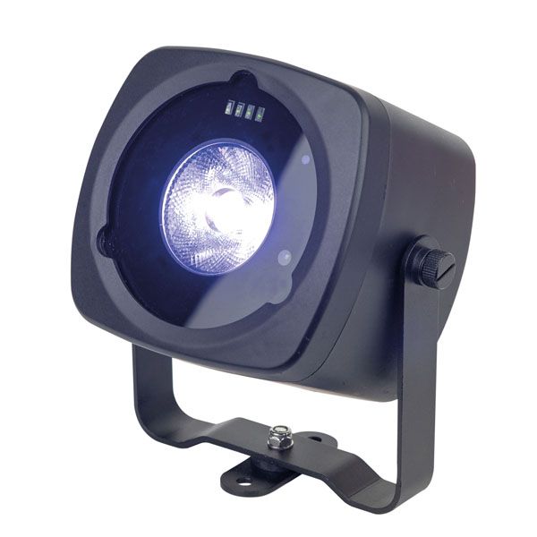 The Event Dot 15 is a compact but extremely versatile battery operated fixture. Equipped with an 15W RGBW and 8° optics it projects a tight and strong beam. In order to be more versatile two additional diffusors (15° and 30° degrees) as well a dome diffusor are included. The Event Dot 15 can be mounted in many positions due to the several mounting options. It comes standard with a free standing bracket, it has a built-in magnet for easy mounting on metal objects, it has a tilt adjuster for adjusting the beam when positioned flat on a floor and last but not least it can be mounted with Velcro due to the slot on the bottom of the fixture.