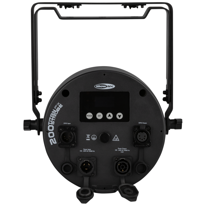 The Showtec Titan Strobe 200 FX has a cold white 200-watt COB LED in the centre surrounded by two rings of 12 individually controllable 2-watt RGBW LEDs. This allows it to produce powerful strobe effects complemented by bright colours. The Fresnel lens ensures a wide beam angle. The Titan Strobe 200 FX can be controlled by DMX, Art-Net and sACN. It also has RDM and can run in Master or Slave mode, as well as having a stand-alone mode with several built-in programs.